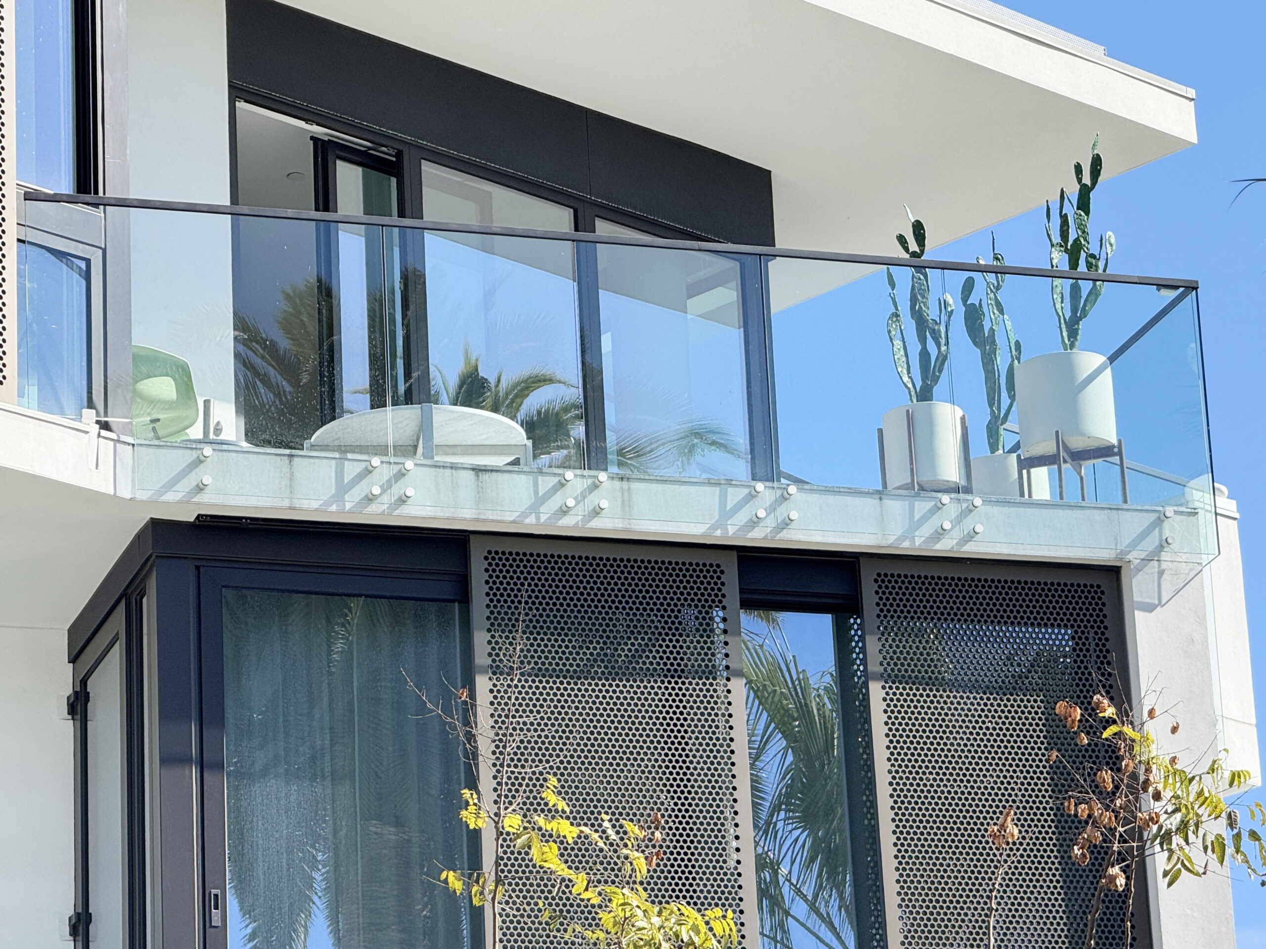 The glass covers the fascia of the decks, creating a seamless and unified appearance for the entire deck.The side-mounted installation of the system eliminates any waterproofing issues. and does not need additional finishing, resulting in significant budget savings.